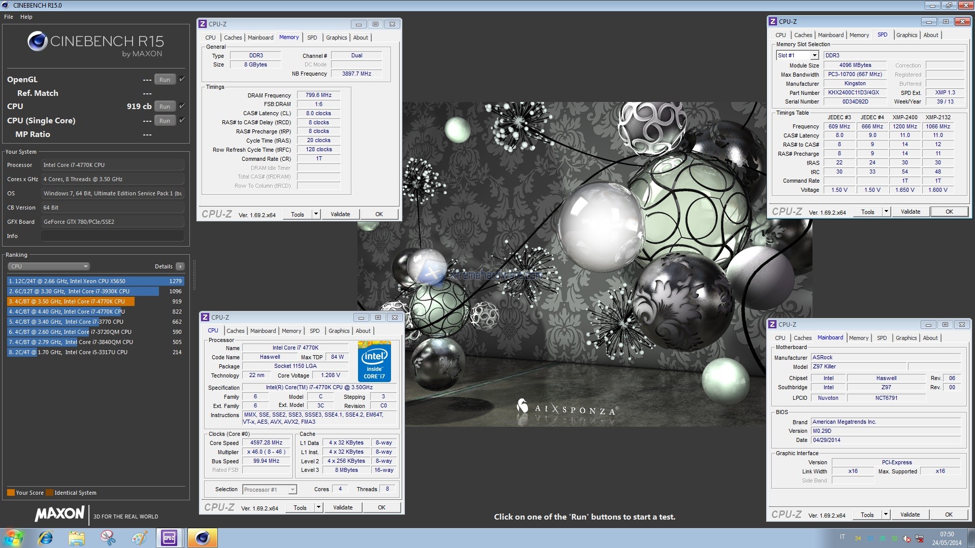Il punteggio ottenuto in overclock al Cinebench R15 è leggermente inferiore a quello della Maximus VI Extreme, ribaltando la classifca rispetto ai risultati ottenuti a default. Nel complesso, il comportamento in overclock della Z97 Killer non è esaltante, ma sicuramente più che sodisfacente per una scheda madre che costa praticamente un terzo rispetto alla Maximus VI Extreme, modello Z87 scelto per la nostra comparativa. La Z97 Killer saprà dunque soddisfare l'appassionato di videogiochi che vuole sfruttare al meglio la propria CPU Haswell o Broadwell serie K (unlocked) tramite la pratica dell’overclock.